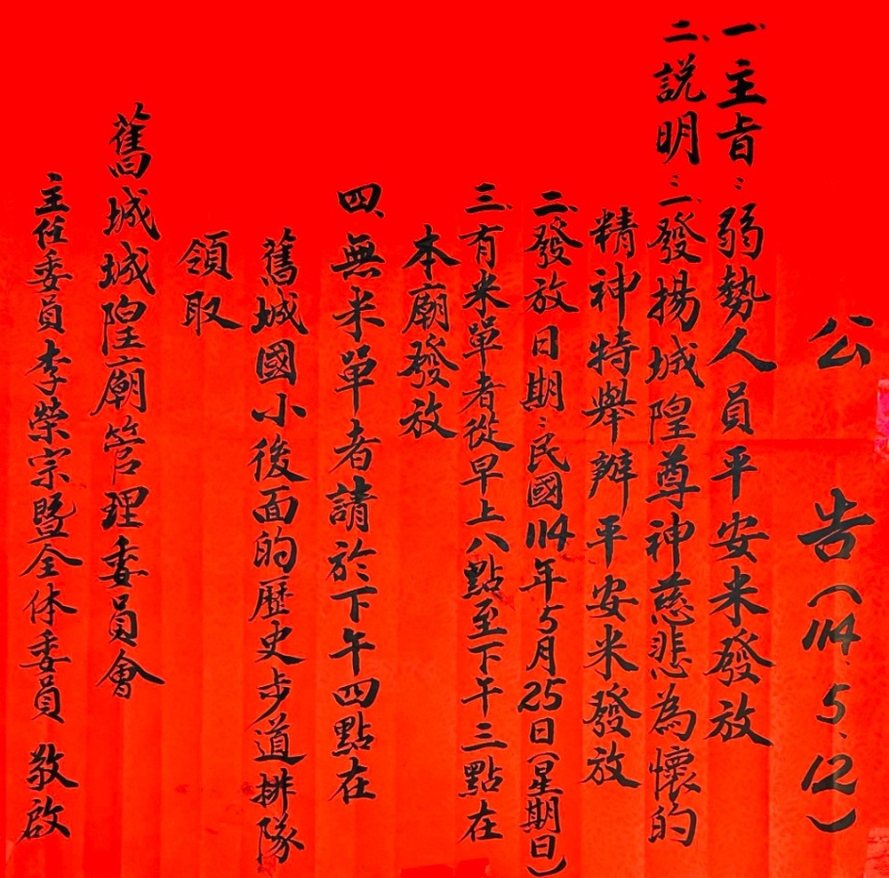 《有米單者 從早上8點至下午3點在本廟發放》